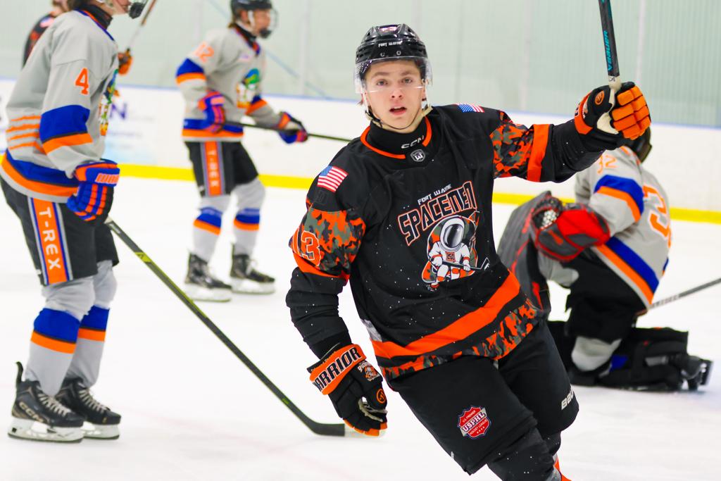 Spacemen Premier earned a hard-fought 7–4 victory over the T-Rex in the first game of their series, showing both offensive firepower and defensive resilience. Tyson Finefrock led the way for Space with two goals, while multiple players contributed to the scoring, helping the team build a solid lead early in the game. The Spacemen’s depth up front allowed them to maintain pressure in all three periods, creating scoring chances across the lineup.